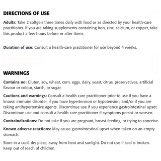 Adults: Take 2 softgels three times daily with food or as directed by your health-wellness-care practitioner. If you are taking supplements containing iron, zinc, calcium, or copper, take this product a few hours before or after them.