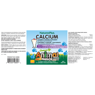 Nature's Plus Animal Parade Children's Calcium Natural Vanilla Sundae 90 Chewable Tablets