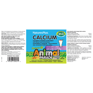 Nature's Plus Animal Parade Childrens Calcium Sugar Free Vanilla Sundae 90 Chewable Tablets