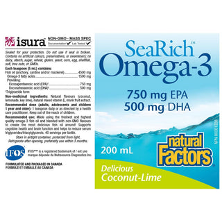Natural Factors Sea Rich Omega-3 EPA 750mg DHA 500mg Coconut Lime 200mL