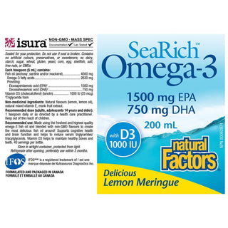 Natural Factors Sea Rich Omega-3 EPA 1500mg DHA 750mg With D3 Lemon Meringue 200mL