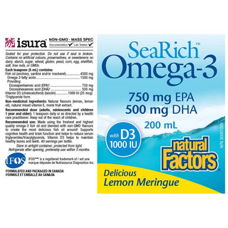 Natural Factors Sea Rich Omega-3 EPA 750mg DHA 500mg With D3 Lemon Meringue 200mL