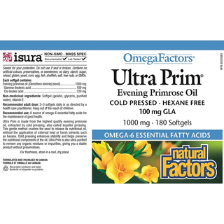 Natural Factors Omega Factors Ultra Prim Evening Primrose Oil 1000mg 180 Softgels