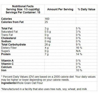Anita's Organic Mill Oat Flour Whole Grain Gluten Free 900g