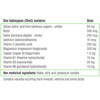 Nourishing Waves Plus is a natural liquid kelp concentrate with added therapeutic doses of silicon, biotin, selenium, magnesium, vitamin C, niacinamide, and vitamin B6 which are needed to Aid optimum humans.