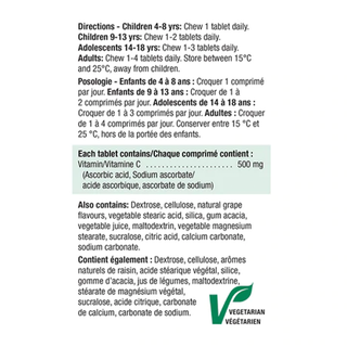 Jamieson Vitamin C 500mg Natural Sweet Grape 100+20 Chewable Tablets
