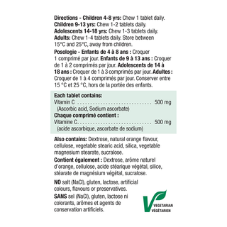 Jamieson Vitamin C 500mg Tangy Orange 330 Chewable Tablets