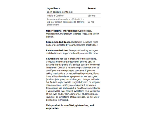 Do not use if pregnant or breastfeeding. Consult a healthcare practitioner prior to use, to exclude the diagnosis of a serious cause of Hormone Balance imbalance. Consult a healthcare practitioner prior to use if you are attempting to conceive, if you are taking Health Products or natural health products, if you have a liver disorder or symptoms of low estrogen (such as joint pain, mood changes, changes in libido, hot flashes, night sweats, vaginal dryness or irregular menstruations), or if symptoms persist or worsen. Discontinue use and consult a healthcare practitioner if you develop liver related symptoms (e.g. yellowing of the eyes and/or skin, dark urine, abdominal pain, jaundice) or symptoms of low estrogen. Do not use if perma seal is missing.