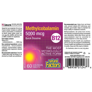 Natural Factors B12 Methylcobalamin 5000mcg 60 Tablets
