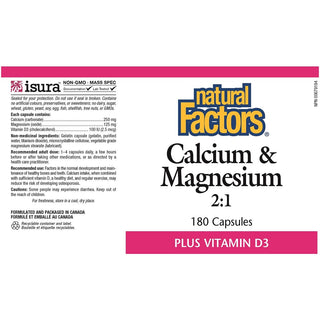 Natural Factors Calcium & Magnesium 2:1 Plus Vitamin D3 180 Capsules