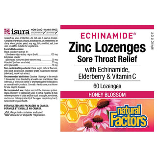 Natural Factors Echinamide Zinc Lozenges Honey Blossom 60 Lozenges