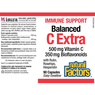 Natural Factors Balanced C Extra 500mg Vitamin C 350mg Bioflavonoids 90 Capsules