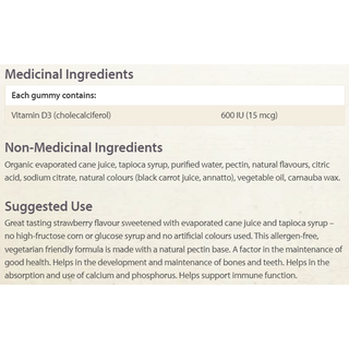 Natural Factors Big Friends Vitamin D3 600IU Strawberry 60 Gummies