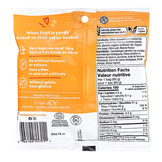 Patience Fruit Sour Cran Real Dried Cranberries Sour Peach 60g