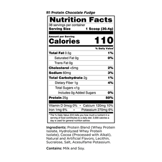 Rule 1 R1 Protein Whey Protein Isolate Chocolate Fudge 28 Servings