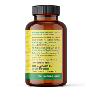 Pure Lab Vitamins Vegan Vitamin D3 1000 IU 240 Veggie Caps