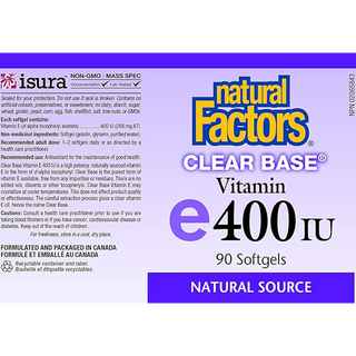 Natural Factors Clear Base Vitamin E 400 IU 180 Softgels