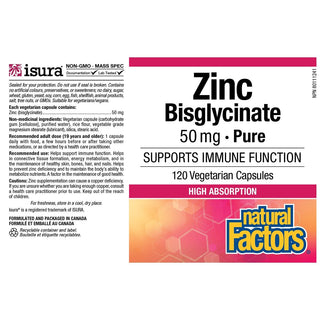 Natural Factors Zinc Bisglycinate 50mg 120 Veggie Caps